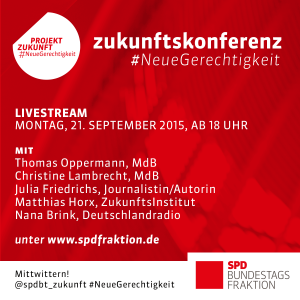 Heute Abend ab 18.00 Uhr beginnt die Zukunftskonferenz der SPD-Bundestagsfraktion und damit auch offiziell das „Projekt Zukunft – #NeueGereichtigkeit“.